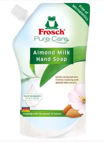 A Frosch mandulatejes folyékony szappan utántöltő gyengéden tisztítja és ápolja a kezeket, miközben finom mandulaillattal kényeztet.