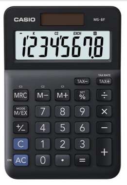 Számológép, asztali, 8 számjegy, CASIO "MS-8 F", fekete